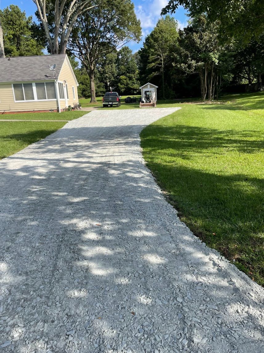 A gravel driveway is one of the most durable and cost-effective options for homeowners who want a clean, reliable entrance to their property. When installed correctly, a gravel driveway provides excellent drainage, reduces mud issues, and holds up well under daily vehicle traffic. At Mullis Grounds Management, we focus on proper driveway preparation so your investment lasts. Our process includes grading the driveway area for proper slope, addressing any drainage concerns, and installing quality driveway stone that compacts tightly for a smooth, long-lasting surface. Many homeowners search for services like gravel driveway installation in Charlotte NC, driveway grading, or driveway repair near me, and our team has the experience and equipment to handle everything from new installations to restoring worn-out driveways. If your driveway has ruts, potholes, or poor drainage, we can provide a professional solution that improves both the look and performance of your property.